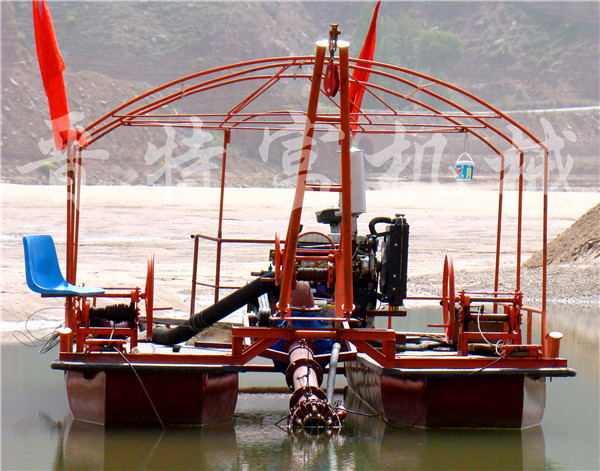 晉特富環(huán)??萍忌a(chǎn)的抽砂選鐵船,適用范圍廣,維修費用低,是針對厚泥層抽沙選鐵的設(shè)備。1,產(chǎn)品結(jié)構(gòu):本設(shè)備有附體,主架,鉆桿,抽沙泵,高壓打水泵,控制箱,卷揚機,發(fā)電機組,磁選機,平板磁選機,發(fā)沖箱,尾礦輸送設(shè)備等組成。2,抽沙系統(tǒng):抽沙泵8吋-16吋,打水泵6吋-14吋,動力配電機或柴油機,抽沙鉆桿,用鋼板工鋼焊接,強度大,鉆探深度3-100米,3,選礦設(shè)備:JTF-磁1530磁選機1-3臺,JTF-pb3040平板磁選一套,4,尾礦輸送設(shè)備:輸送帶,抽沙泵,二次挖斗,水洗輪,螺旋輸送機,溜槽,任選其一。