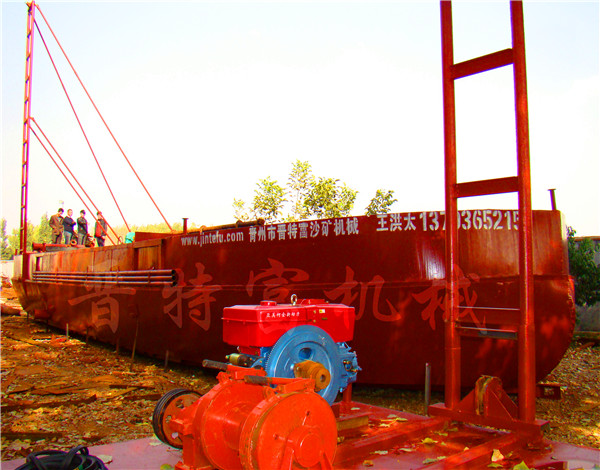 晉特富環(huán)??萍忌a(chǎn)的抽砂選鐵船,適用范圍廣,維修費(fèi)用低,是針對(duì)厚泥層抽沙選鐵的設(shè)備。1,產(chǎn)品結(jié)構(gòu):本設(shè)備有附體,主架,鉆桿,抽沙泵,高壓打水泵,控制箱,卷?yè)P(yáng)機(jī),發(fā)電機(jī)組,磁選機(jī),平板磁選機(jī),發(fā)沖箱,尾礦輸送設(shè)備等組成。2,抽沙系統(tǒng):抽沙泵8吋-16吋,打水泵6吋-14吋,動(dòng)力配電機(jī)或柴油機(jī),抽沙鉆桿,用鋼板工鋼焊接,強(qiáng)度大,鉆探深度3-100米,3,選礦設(shè)備:JTF-磁1530磁選機(jī)1-3臺(tái),JTF-pb3040平板磁選一套,4,尾礦輸送設(shè)備:輸送帶,抽沙泵,二次挖斗,水洗輪,螺旋輸送機(jī),溜槽,任選其一。